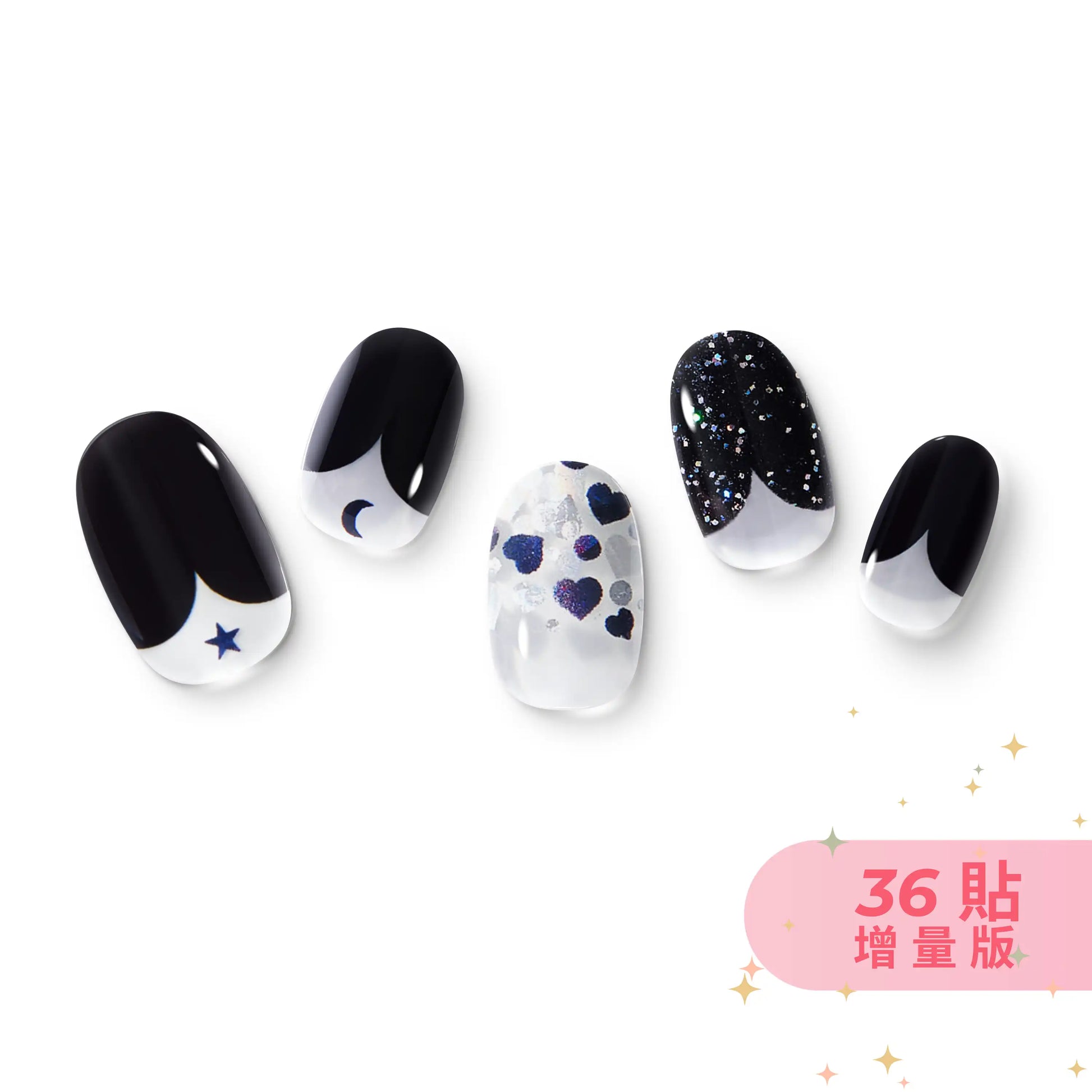 ✦ 包含:半固化凝膠美甲貼 (每張 12 貼;總計 3 張共 36 貼)、指甲磨棒、小木棒、清潔棉片